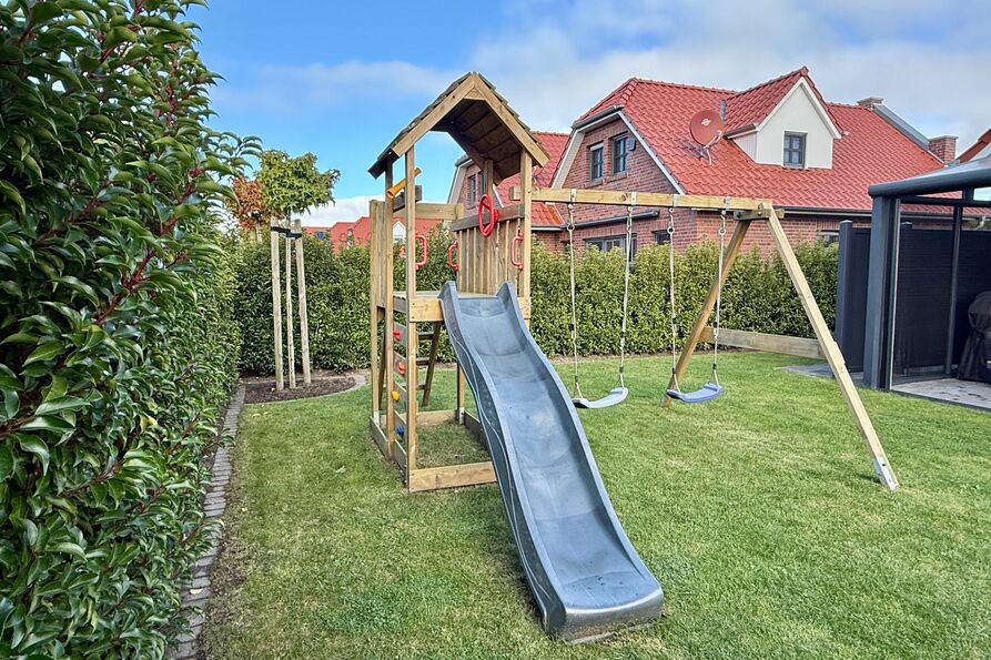 Herzlich willkommen im Ferienhaus "Mia"! Unser 100qm großes Ferienhaus auf zwei Etagen wurde mit viel Liebe speziell für Familien eingerichtet – hier fühlen sich Groß und Klein von der ersten Minute an wohl. Mit drei geräumigen Schlafzimmern und zwei modernen Tageslichtbädern (jeweils eines im Erd- und Obergeschoss) bietet das Haus genügend Platz für Eltern, Kinder und sogar Großeltern oder Freunde. Der lichtdurchflutete Wohnbereich mit hochwertiger Küchenzeile ist das Herzstück des Hauses – perfekt für gemeinsames Kochen, Spielen und Kuschelabende. Eine Auswahl an Kinderspielzeug im Innenbereich sorgt dafür, dass keine Langeweile aufkommt. Draußen wird das Ferienhaus "Mia" zum wahren Kinderparadies: Der große, komplett eingezäunte Garten bietet Sicherheit und Freiheit zugleich. Ein hochwertiges, bodengleiches Berg-Trampolin, Klettergerüst mit Schaukel und viel Platz zum Toben und Fußball spielen lassen Kinderherzen höherschlagen. Währenddessen können die Eltern auf der vollüberdachten Terrasse entspannen – bei Sonne wie bei Regen. Neben Zwei Parkplätzen steht außerdem ein separater Fahrradabstellraum zur Verfügung. Das Haus mit unverbautem Feldblick liegt ruhig fernab vom Durchgangsverkehr, aber dennoch nah genug, um den charmanten Ortskern und den Hafen bequem zu erreichen. Ideal für Familien, die Erholung und Abenteuer miteinander verbinden möchten. Ferienhaus Mia – wo Kinder glücklich sind und Eltern zur Ruhe kommen